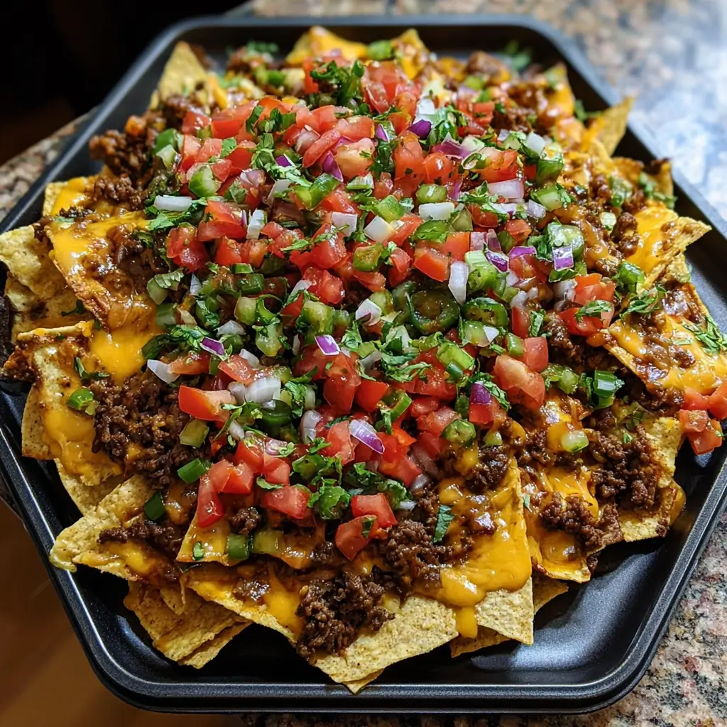 A cozy, beginner-friendly nachos recipe layered with seasoned beef, melty cheese, crisp tortilla chips, and fresh toppings. Perfect for game nights, family dinners, or anytime you want a warm, satisfying platter everyone can share.