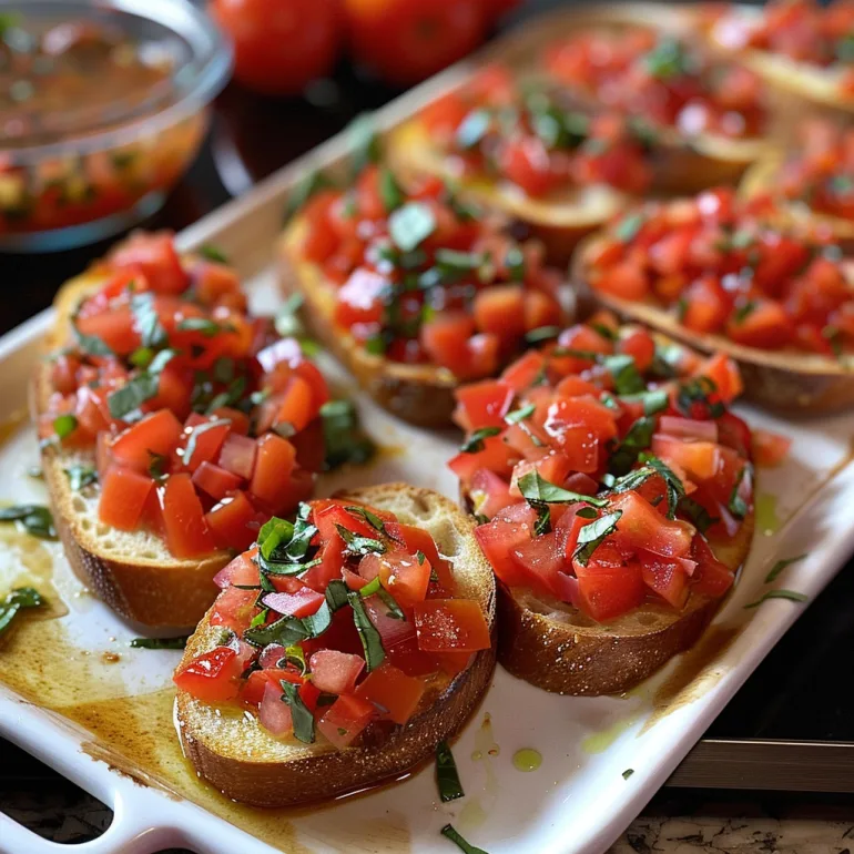 Classic Italian appetizer featuring crispy toasted bread topped with fresh tomatoes, basil, and garlic. Perfect for parties, gatherings, or any occasion.