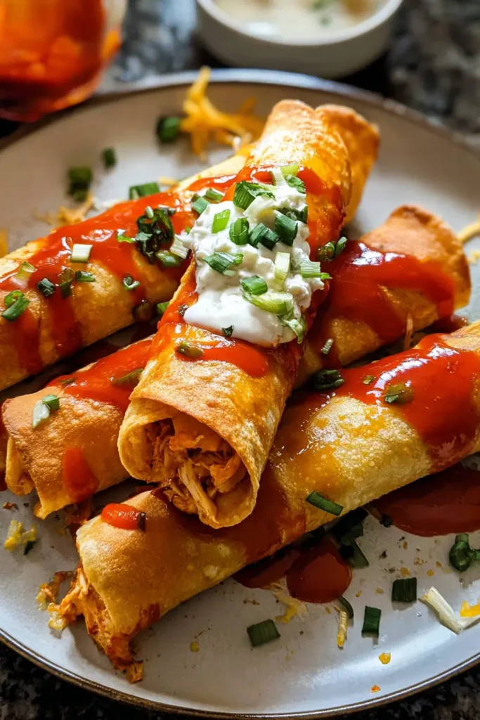 Crispy baked taquitos filled with creamy Buffalo chicken, perfect for family dinners, snacks, or game nights. Easy to make with simple pantry ingredients.