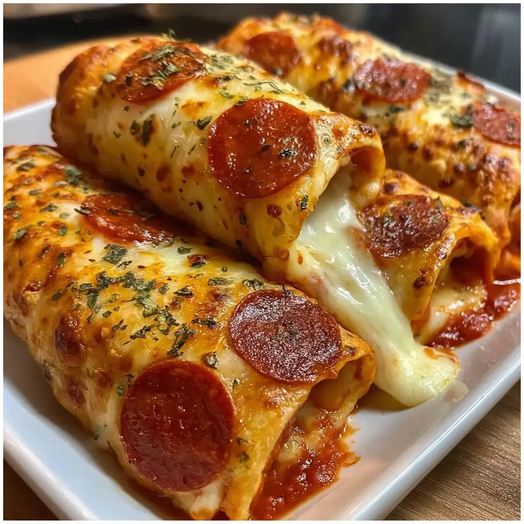 These pizza roll-ups are perfect as a quick snack, appetizer, or kid-friendly dinner. Serve them with warm marinara sauce for dipping, or pair with a simple side salad for a balanced meal. They’re also great for lunchboxes or game-night treats since they can be eaten warm or at room temperature. For a fun twist, try adding vegetables like bell peppers, mushrooms, or spinach to the filling. Whether for a casual family night or entertaining friends, these cheesy, gooey roll-ups are always a hit and make every bite feel like a slice of pizza magic.