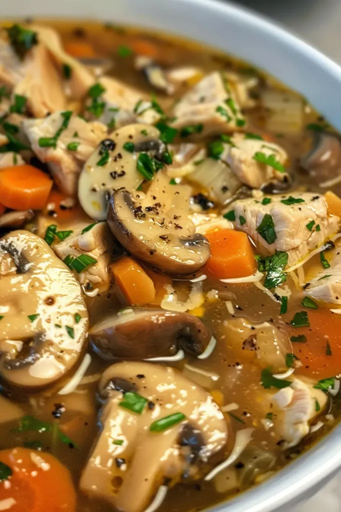 This soup isn’t just about taste—it’s about practicality. Chicken and Mushroom Soup is easy to prepare on a busy weeknight, especially when you rely on simple pantry staples like chicken broth, canned or fresh mushrooms, and frozen vegetables. It also stores well, making it ideal for meal prep or leftovers that taste even better the next day. Because it’s warm, hearty, and satisfying, this soup is perfect for cold evenings, family dinners, or when you need a soothing dish to lift your spirits. The cozy, inviting texture makes it a dish that feels homemade, even if you’ve thrown it together quickly.