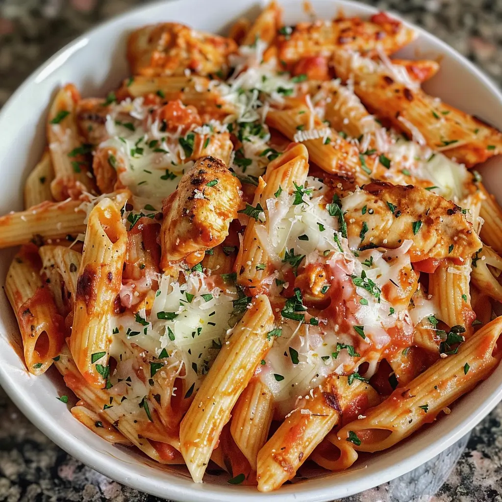 A cozy, cheesy Chicken Parmesan Pasta that combines tender chicken, flavorful tomato sauce, and gooey cheese for a perfect family dinner. Easy to make with simple ingredients.
