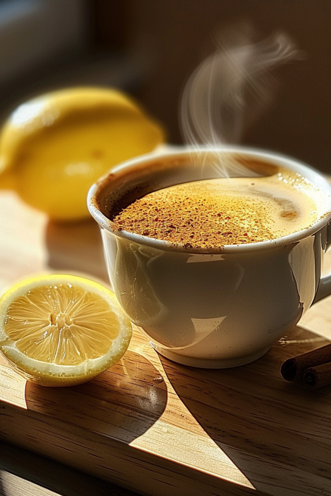 Once your ingredients are ready, preparation is simple. Brew your coffee as usual, then stir in cinnamon and turmeric while it’s hot so they dissolve properly. Add lemon juice last to keep its tangy freshness. If using honey, blend it well so it doesn’t settle at the bottom. A small whisk or frother works wonders to make the drink smooth and creamy instead of gritty. For those who want an even silkier texture, blending the drink for 10–15 seconds creates a latte-like foam.
