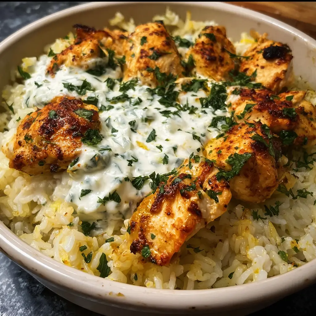 A comforting, one-pan chicken tzatziki rice bake featuring tender chicken, fluffy rice, and creamy lemon-garlic tzatziki sauce. Quick to assemble, perfect for weeknight dinners, and easy enough for beginners.