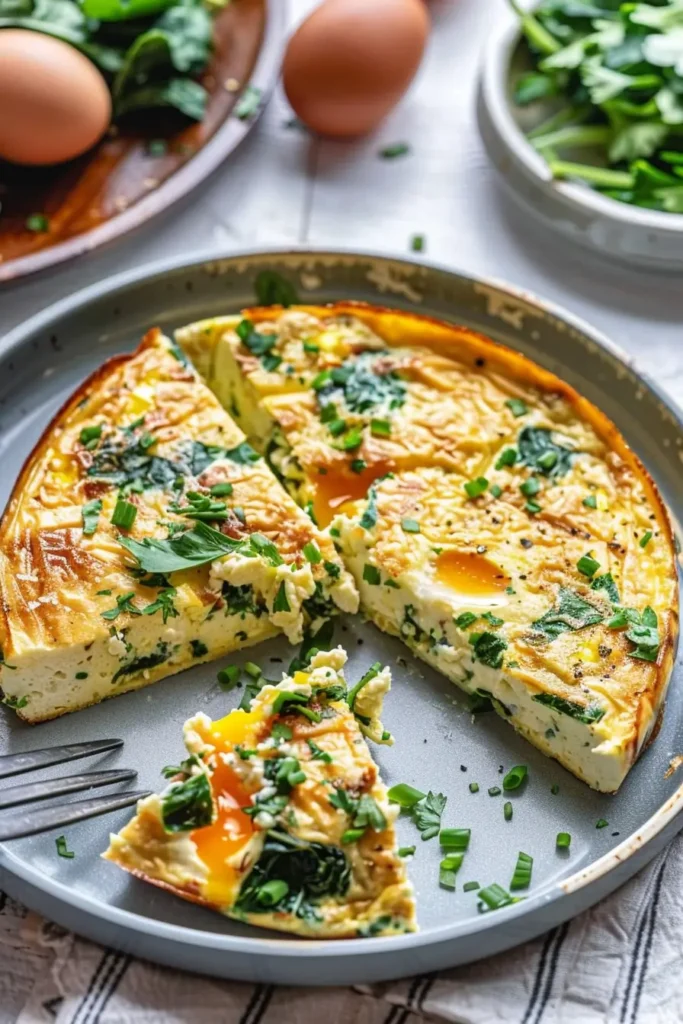 Transfer the skillet to the preheated oven and bake for 8–10 minutes, or until the frittata is set in the center. Remove from the oven and let it cool for a minute before slicing. Garnish with fresh herbs for extra flavor and color. Serve warm for breakfast, brunch, or even a light dinner. This method ensures a fluffy, protein-packed frittata that’s visually appealing and delicious in every bite.