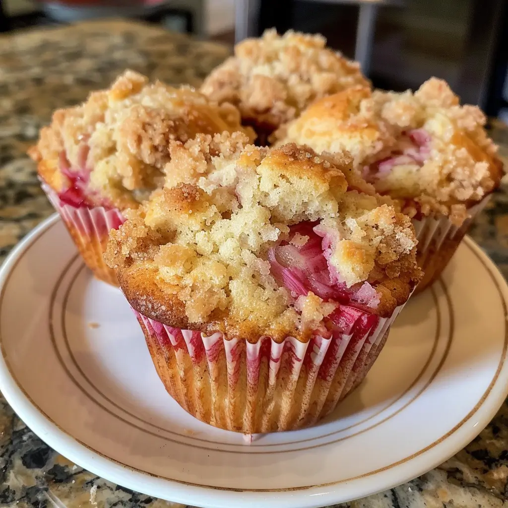 Spoon the batter into the prepared muffin tin, filling each cup about 2/3 full. Bake for 20–25 minutes or until the tops are golden and a toothpick inserted into the center comes out clean. Allow the muffins to cool in the pan for 5 minutes, then transfer to a wire rack. Serve warm or at room temperature. The combination of fluffy batter and tangy rhubarb creates a perfectly balanced muffin every time.