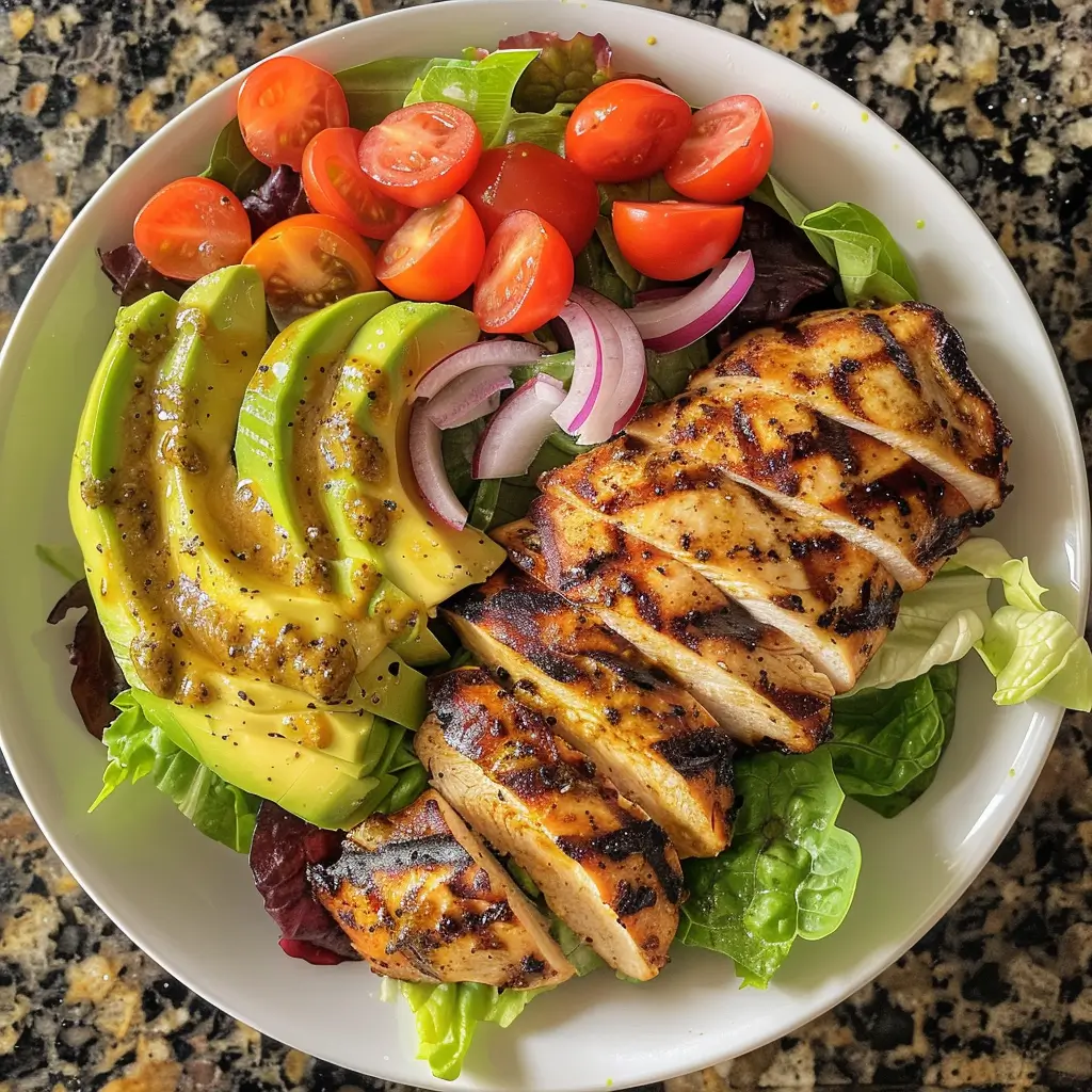 Finally, slice the grilled chicken and arrange it over the salad. Drizzle honey Dijon dressing just before serving, then gently toss or leave layered for presentation. This final touch brings the entire Grilled Chicken Cobb Salad with Honey Dijon together beautifully.