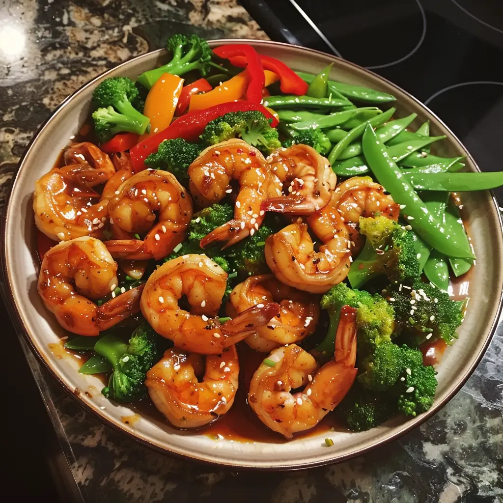 A quick, sweet-savory shrimp stir fry with crisp vegetables in a sticky honey garlic sauce. Perfect for busy weeknight dinners.