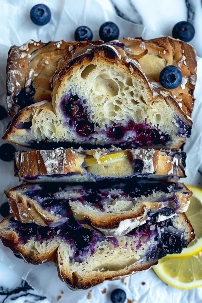 Lemon Blueberry Sourdough Bread is a perfect blend of tangy lemon zest and juicy blueberries, combined with the chewy, airy texture of sourdough. The burst of fresh flavors in each bite makes it an ideal treat for breakfast, a light snack, or even as a dessert.