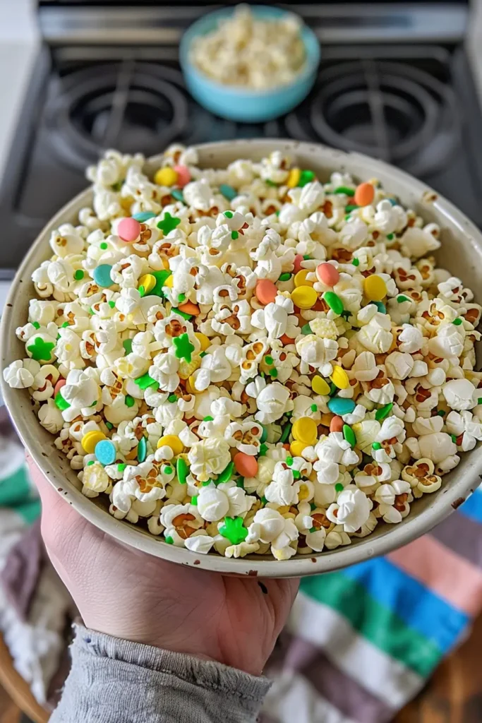 Flexibility is key with Loaded Leprechaun Popcorn. You can swap regular chocolate for dairy-free chocolate chips to accommodate dietary needs. For nut-free parties, skip any nuts and add extra candy or pretzel pieces instead. If you prefer less sugar, reduce the candy or use naturally colored sprinkles. Even the popcorn base can be air-popped or microwaved, depending on what’s easiest. These swaps keep the recipe accessible without losing the fun, festive flavor.