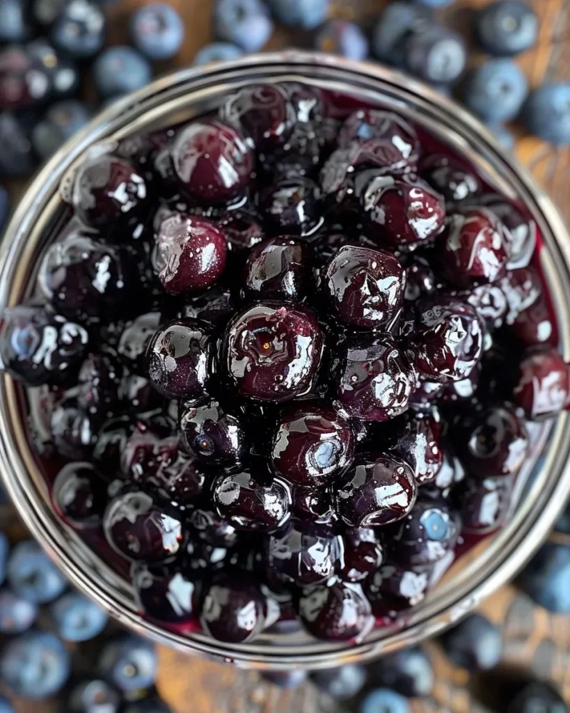 A luxurious blueberry compote that elevates desserts and breakfast dishes with its rich flavor and beautiful color.