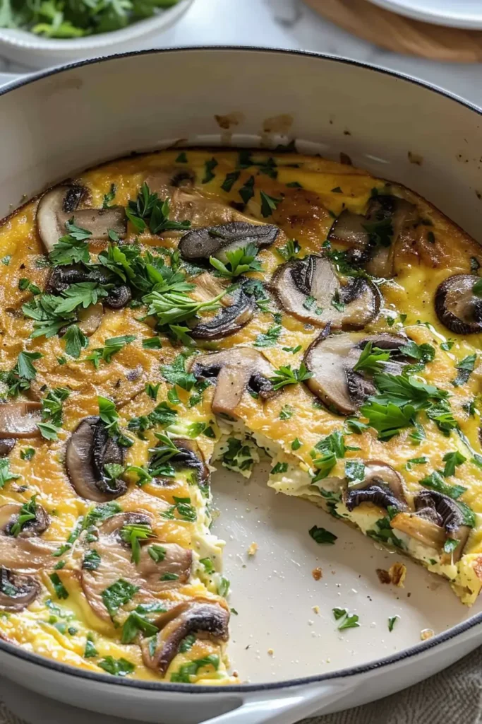A Mushroom Frittata is wonderfully versatile, making it suitable for any meal of the day. Serve it hot for a cozy breakfast with toast or fresh fruit. For brunch, pair it with a side salad or roasted vegetables for a colorful, satisfying plate. It’s also hearty enough to enjoy as a light dinner, accompanied by whole-grain bread or a simple green salad. The combination of mushrooms, eggs, and cheese feels comforting yet balanced, giving you a meal that’s flavorful and filling without being heavy.