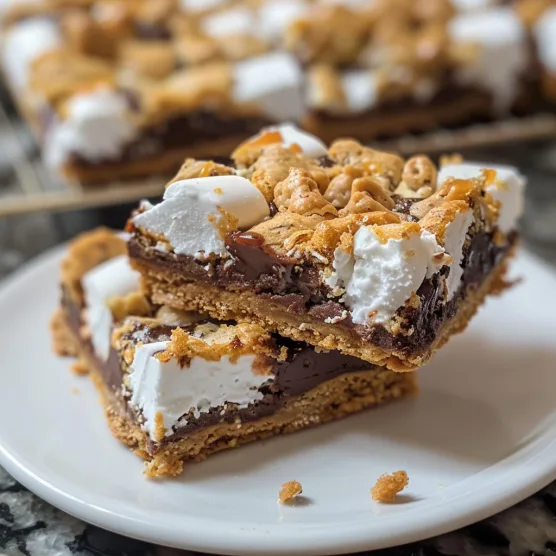 Decadent layered dessert bars featuring a buttery graham cracker crust, rich chocolate center, and golden-toasted marshmallow topping that captures all the classic campfire s’more flavors in convenient bar form.