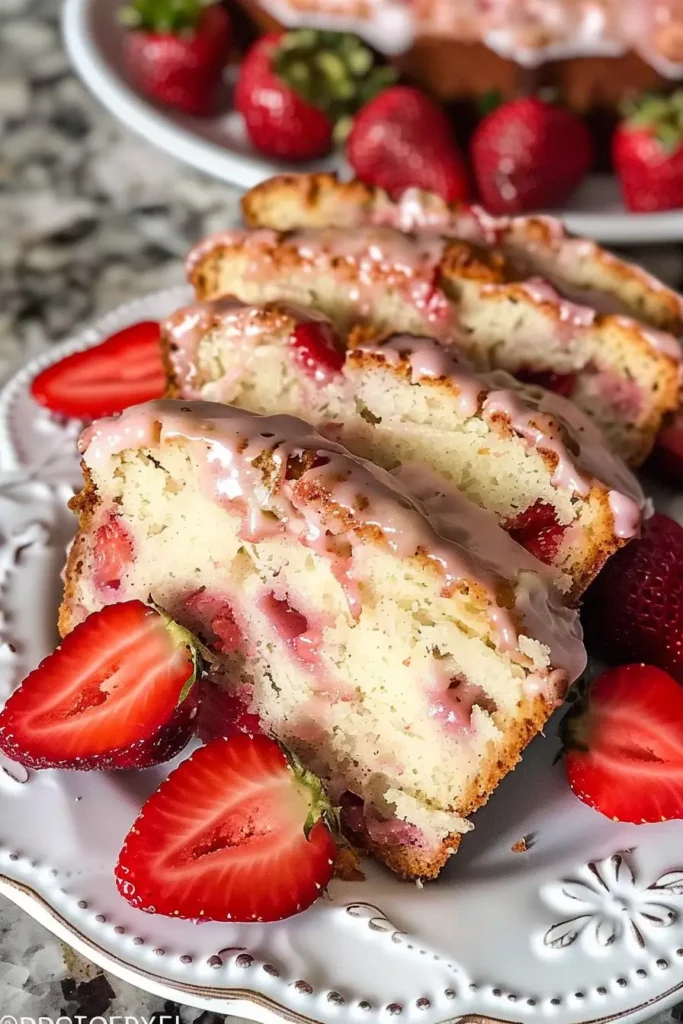 Once baked, let the Strawberry Bread cool in the pan for 10 minutes, then transfer it to a wire rack. This cooling step helps the loaf set properly. After cooling, slice and serve. Each slice should be soft, moist, and full of strawberry flavor.