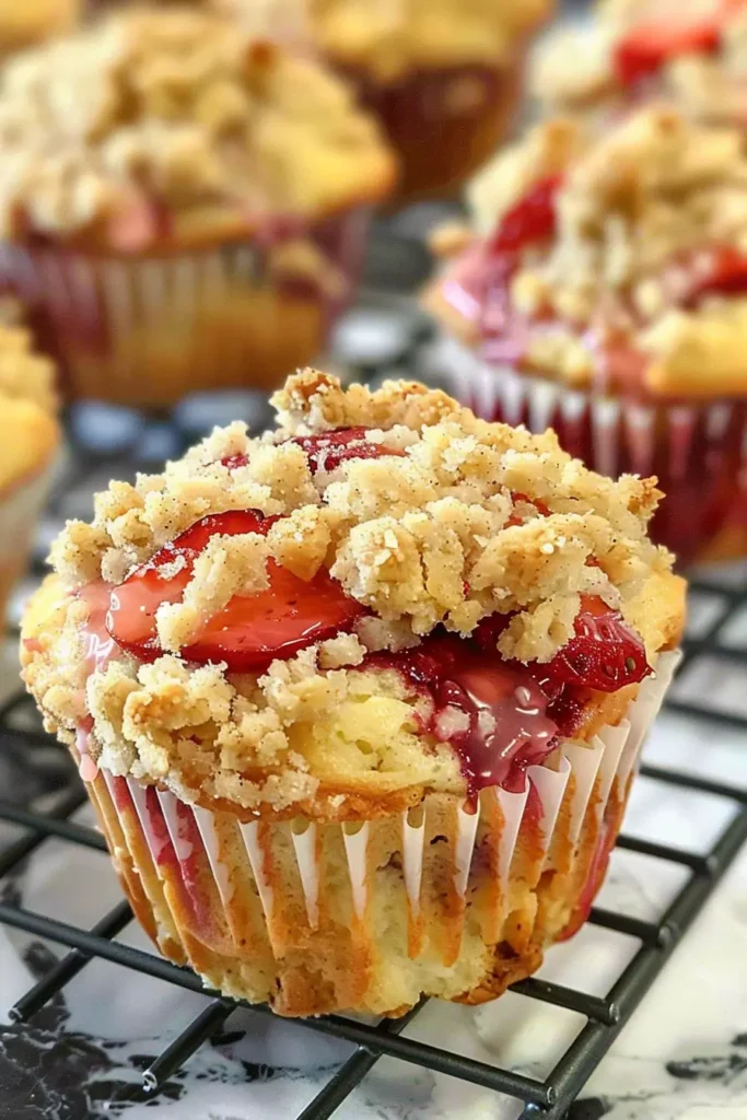 Finally, bake until the Strawberry Cream Cheese Muffins with Streusel Crumb Topping turn lightly golden. Let them cool briefly so the filling sets perfectly.